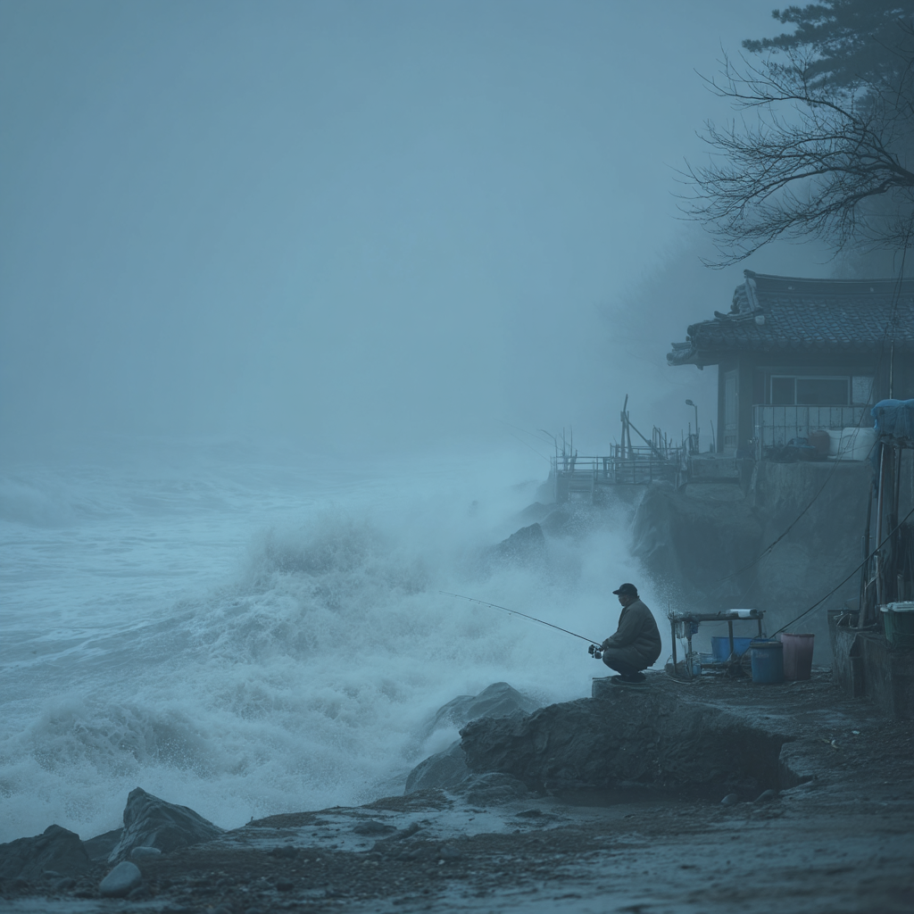 넓은 바다에서 낚시하고 있었는데, 파도가 치고 바람 불었다면?